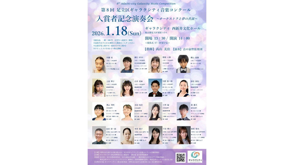 第8回足立区ギャラクシティ音楽コンクール入賞者記念演奏会~オーケストラと夢の共演~