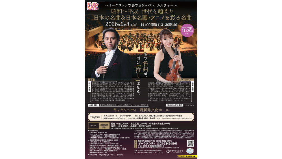 ジャパンフェスタ in ADACHI 2026 〜オーケストラで奏でるジャパン カルチャー〜昭和〜平成 世代を超えた日本の名曲&日本名画・アニメを彩る名曲