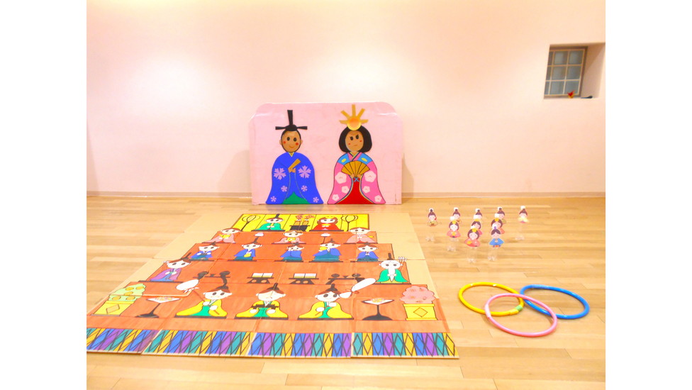 顔出しフォトや絵合わせパズル、ひしもちを積み上げてごっこあそびを楽しもう!