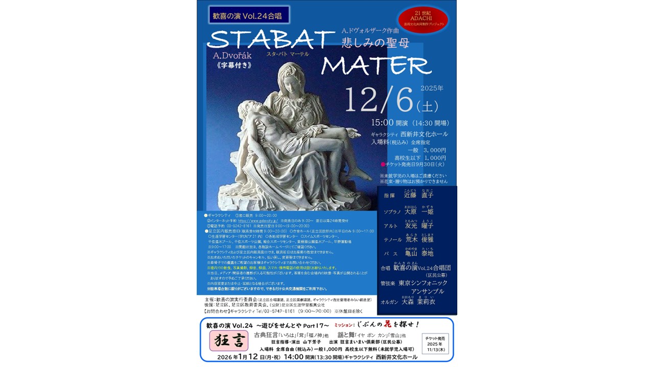 21世紀 ADACHI 芸術文化共同制作プロジェクト 歓喜の演Vol.24≪合唱≫ A.ドヴォルザーク作曲 「スターバトマーテル STABAT MATER(悲しみの聖母)」