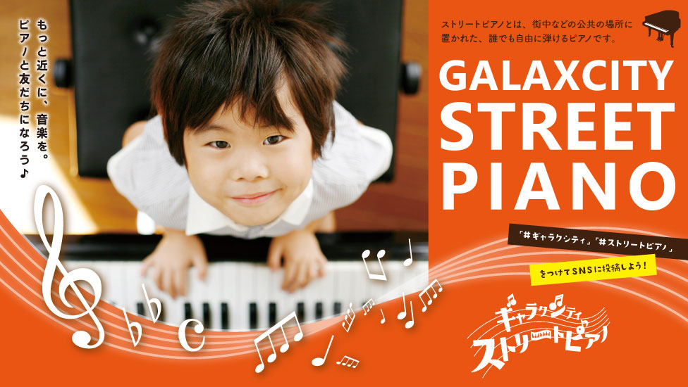 参加・観覧された方は、ハッシュタグ「#ギャラクシティ」「#ストリートピアノ」をつけてSNSに投稿して、シェアしよう!