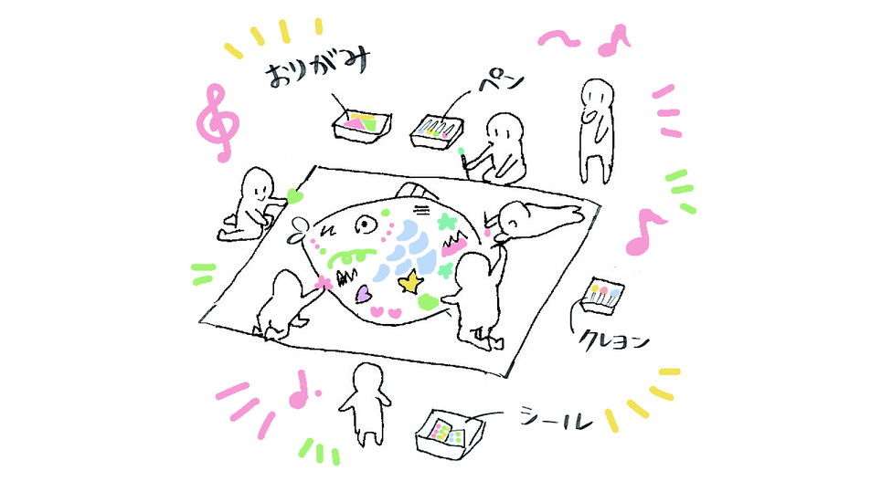 ピアノ演奏に合わせて、みんなで魚に色を塗ってみよう!