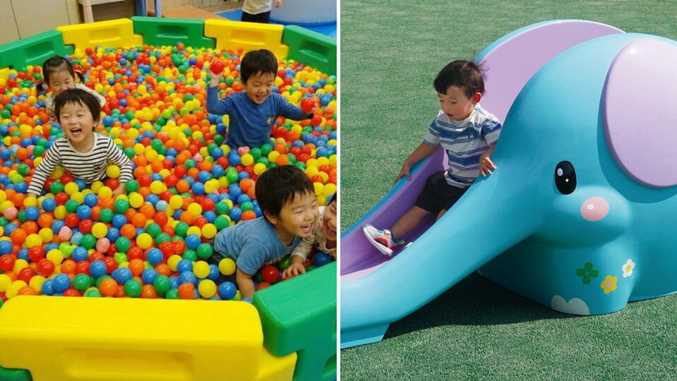 みんなあつまれ♪ぞうすべり台とボールプールであそぼう!